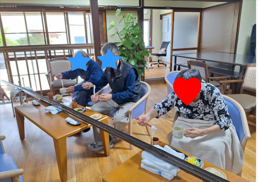 今月は、毎週1回デイサービスれんの室内で「流しそーめん」行います(*^^)v