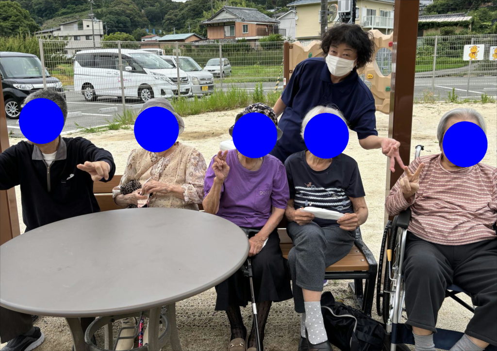 散策後には、近くの公園で利用者皆さんと、休憩&記念撮影(^^)/