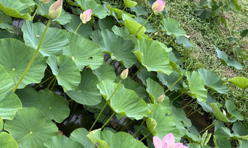 利用者さんも、大きな蓮の花を見て「大きいな~・綺麗やな~」と池の周りを、スタッフと一緒に