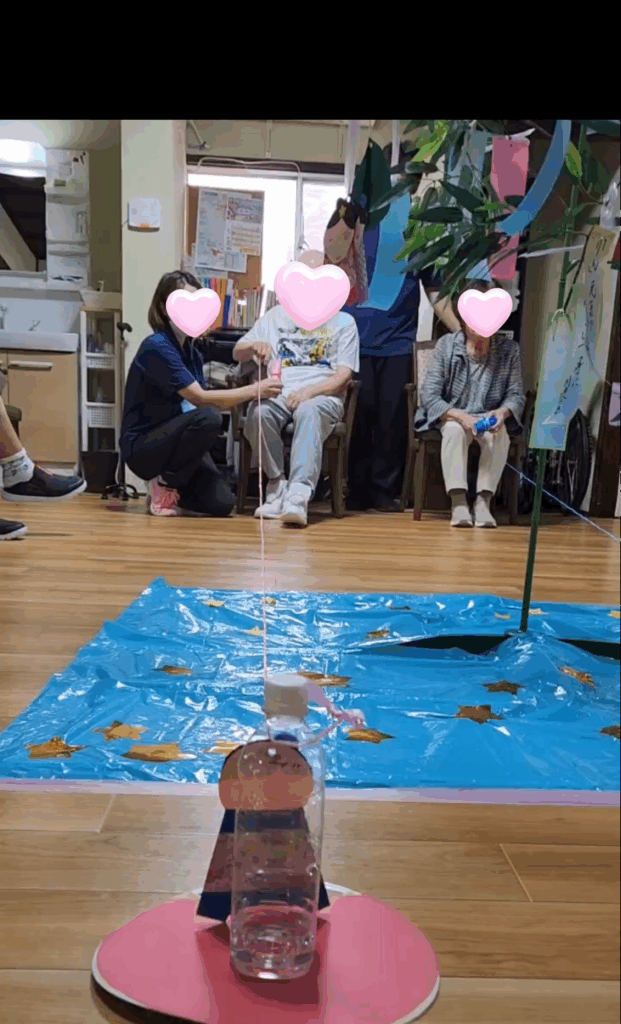 令和7年7月7日から七夕週間と題し、利用者の皆様には、レクリエーションで「会えるかな??天の川渡りゲーム」にチャレンジしていただいています♪