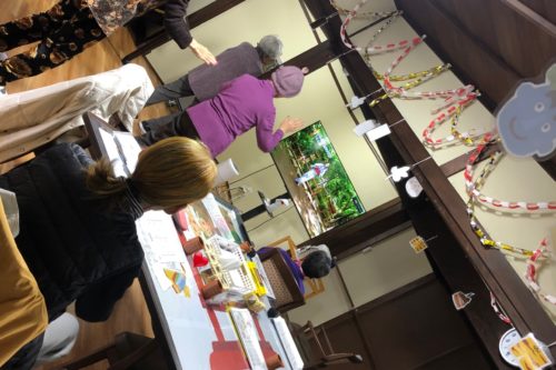 そして2種目めの競技はクルクル綱引き対決!!ヒモの真ん中にある印を相手より早く自分のほうに巻き付けた方の勝ちとなるこのゲーム!自分が負けそうになると、声を出して威嚇する方や黙々とヒモを巻き続けられる方からさまざまでした。皆様、楽しみつつも真剣に競技に取り組まれていました。