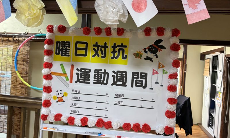 10月13日スポーツの日から1週間、曜日対抗運動習慣と題し利用者の皆様には、2種目の競技にチャレンジしていただいています。