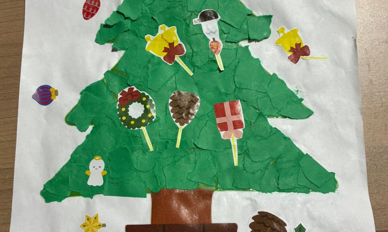 12月1日から1週間、工作レクと題し、利用者の皆様には「貼り絵!クリスマスツリー」を製作していただいています。